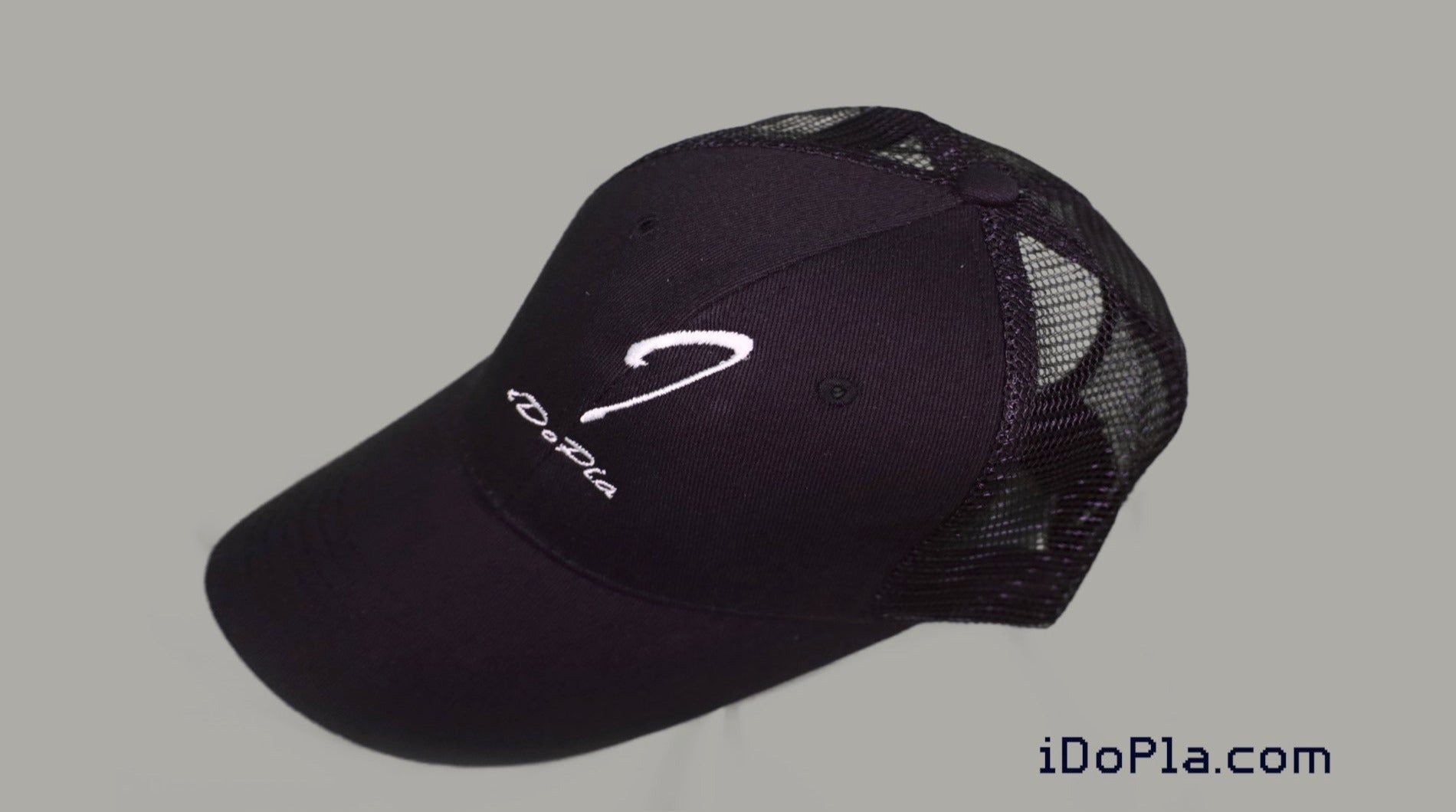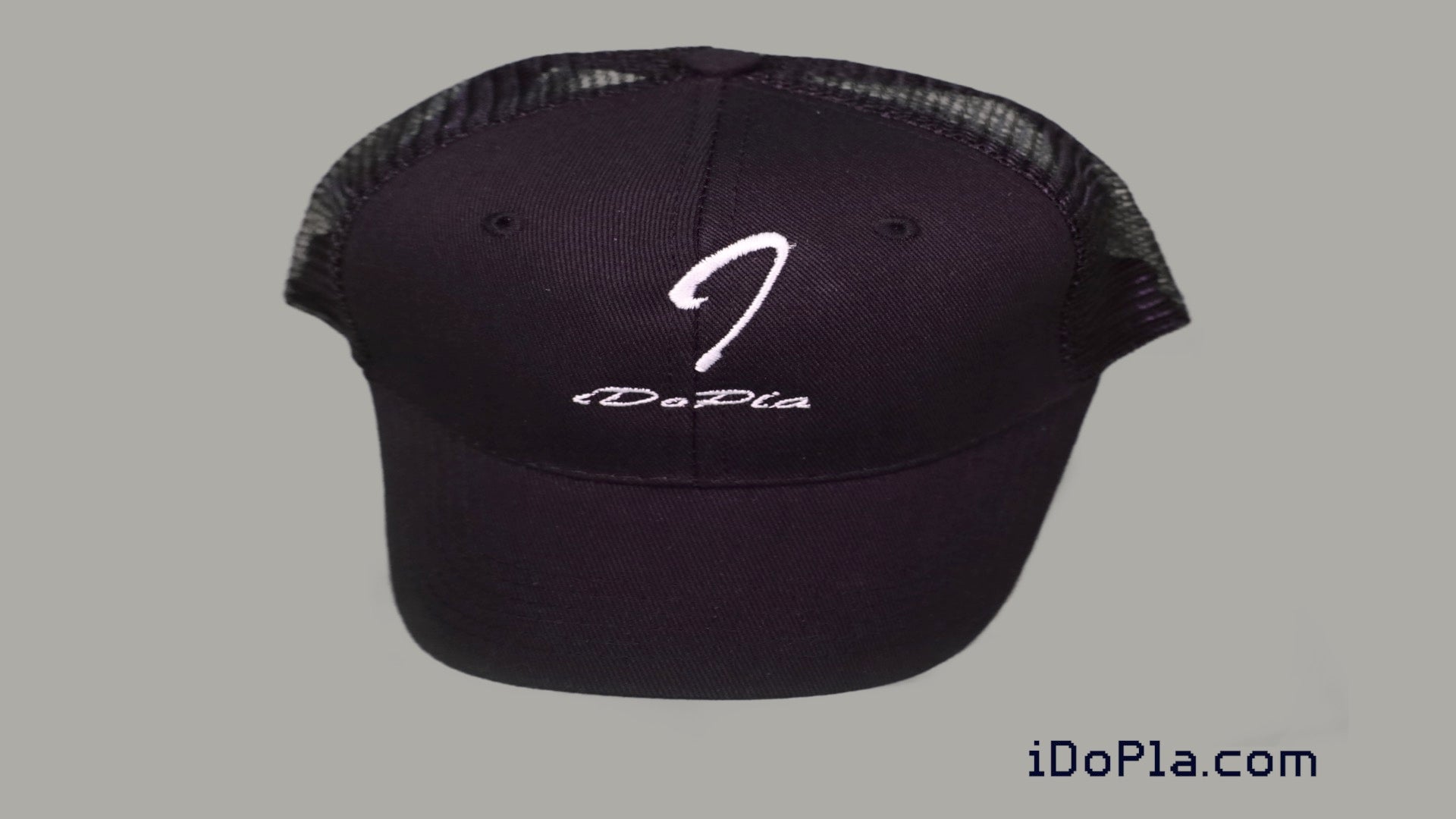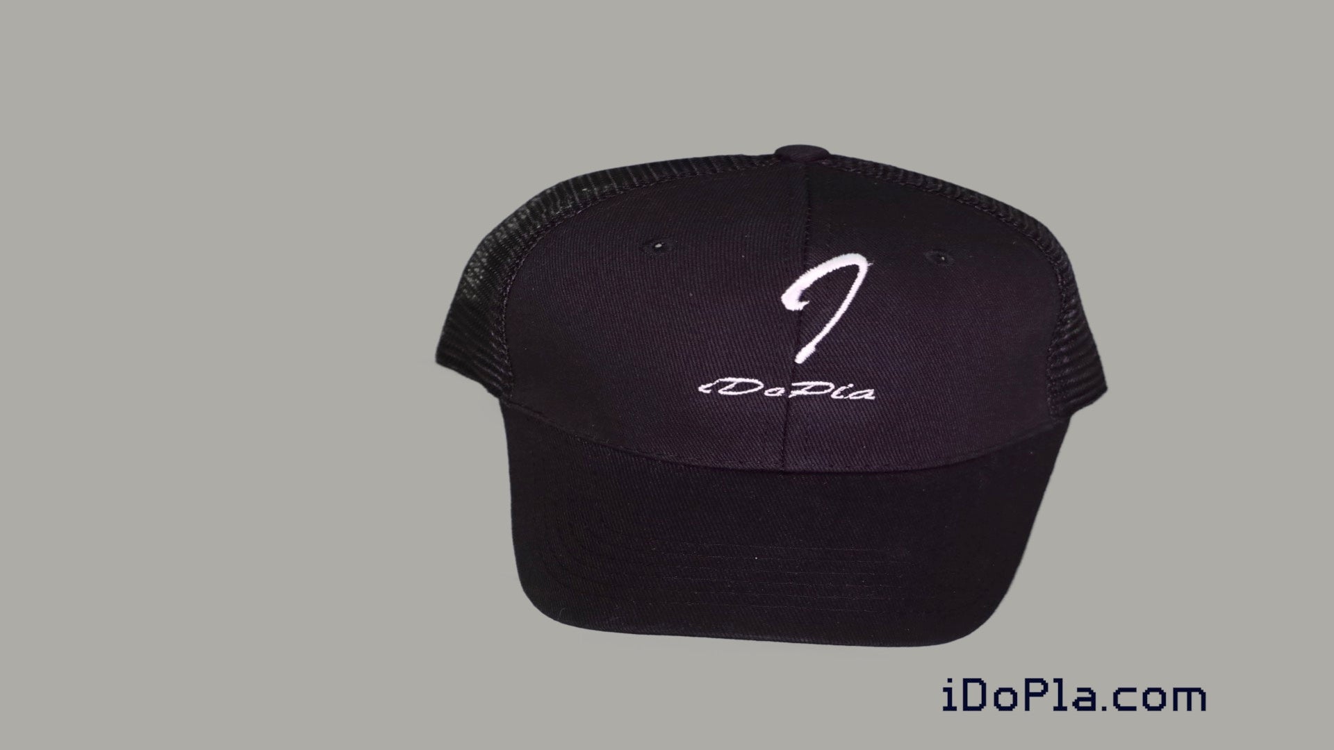 I...iDoPla | White Embroidery | Black Hat | High Quality, 6 Panel Mesh Baseball Hat.